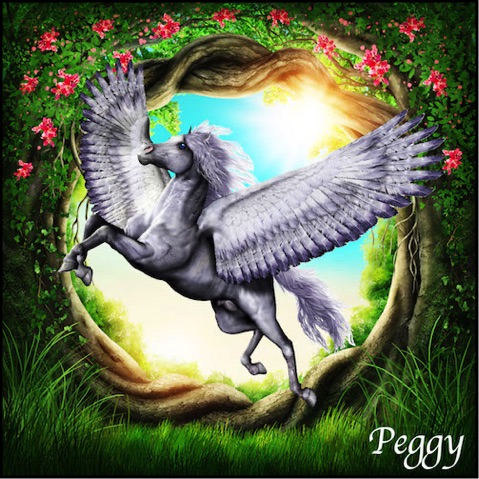 Peggy, a young Pegasus, is another Magical Being who lives in The Magic Forest. She finds Eben after his stubbornness has landed him in a precarious predicament where he is hanging off the edge of a cliff. Peggy saves Eben by using her wings for the first time, and then teaches him about the nature and importance of believing in Magic.